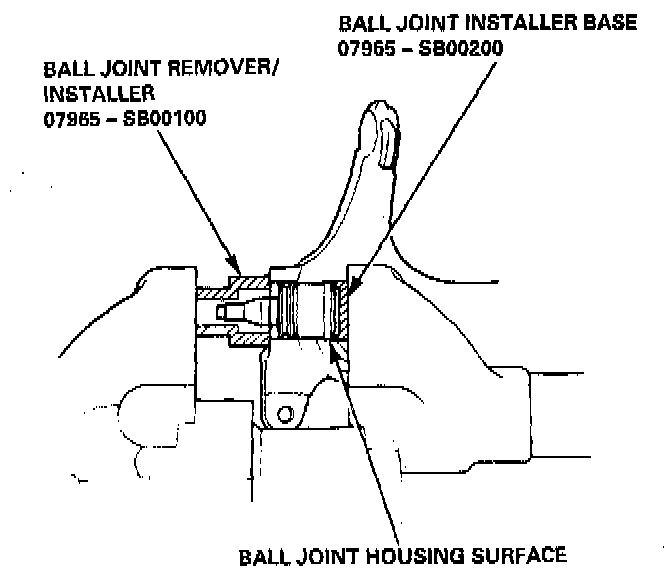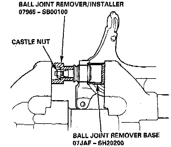 7. Install the special tools over the ball joint as shown, then press the ball joint pin.