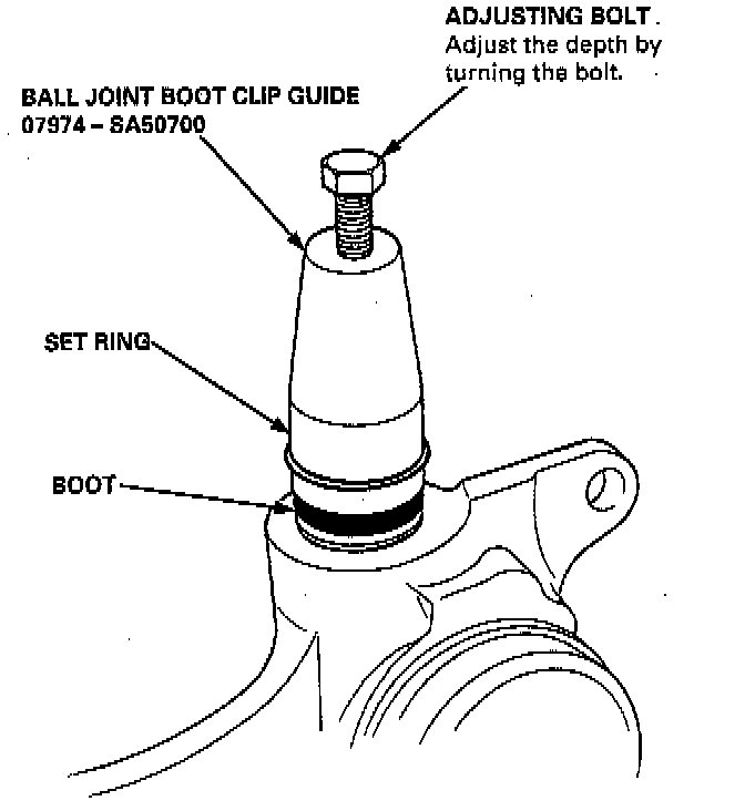 8. Install the ball joint boot and set ring using the special tool.