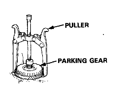 11. Using a universal two jaw puller, remove the parking gear, one-way clutch and countershaft 1st gear assembly.