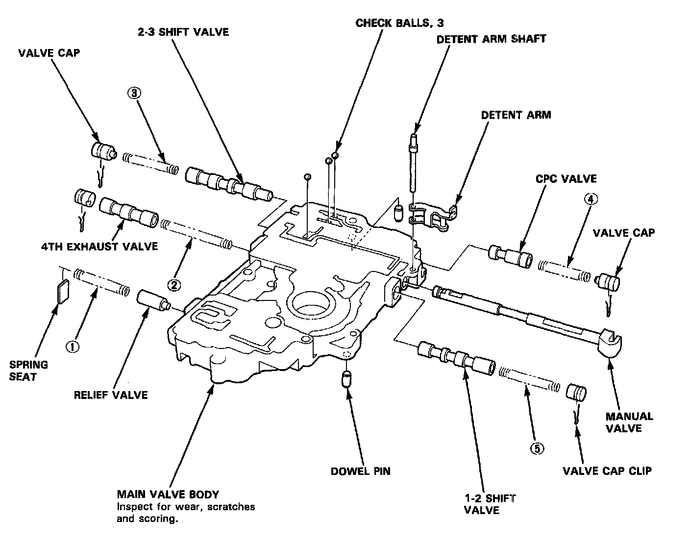 - Check all valves for free movement. If any fail to slide freely, see Valve Body Repair.