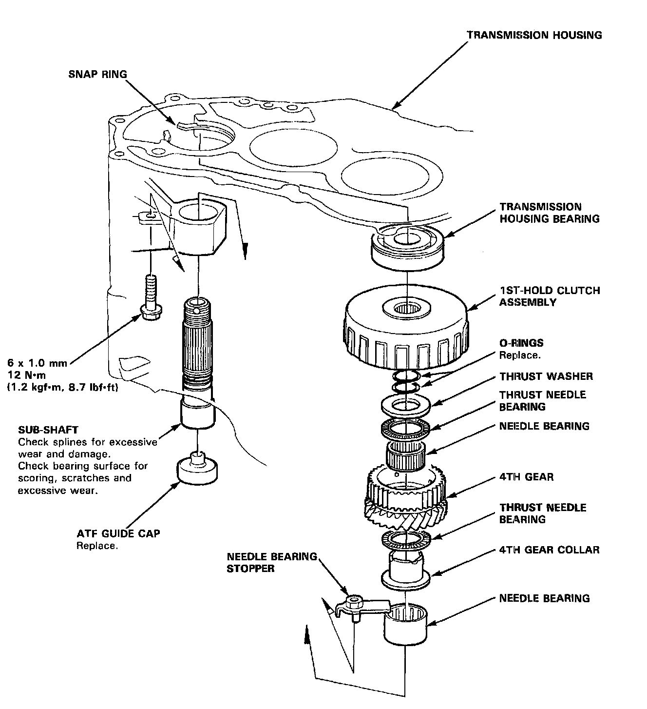 2. Remove the 1st-hold clutch assembly by pulling the sub-shaft, then remove the sub-shaft.