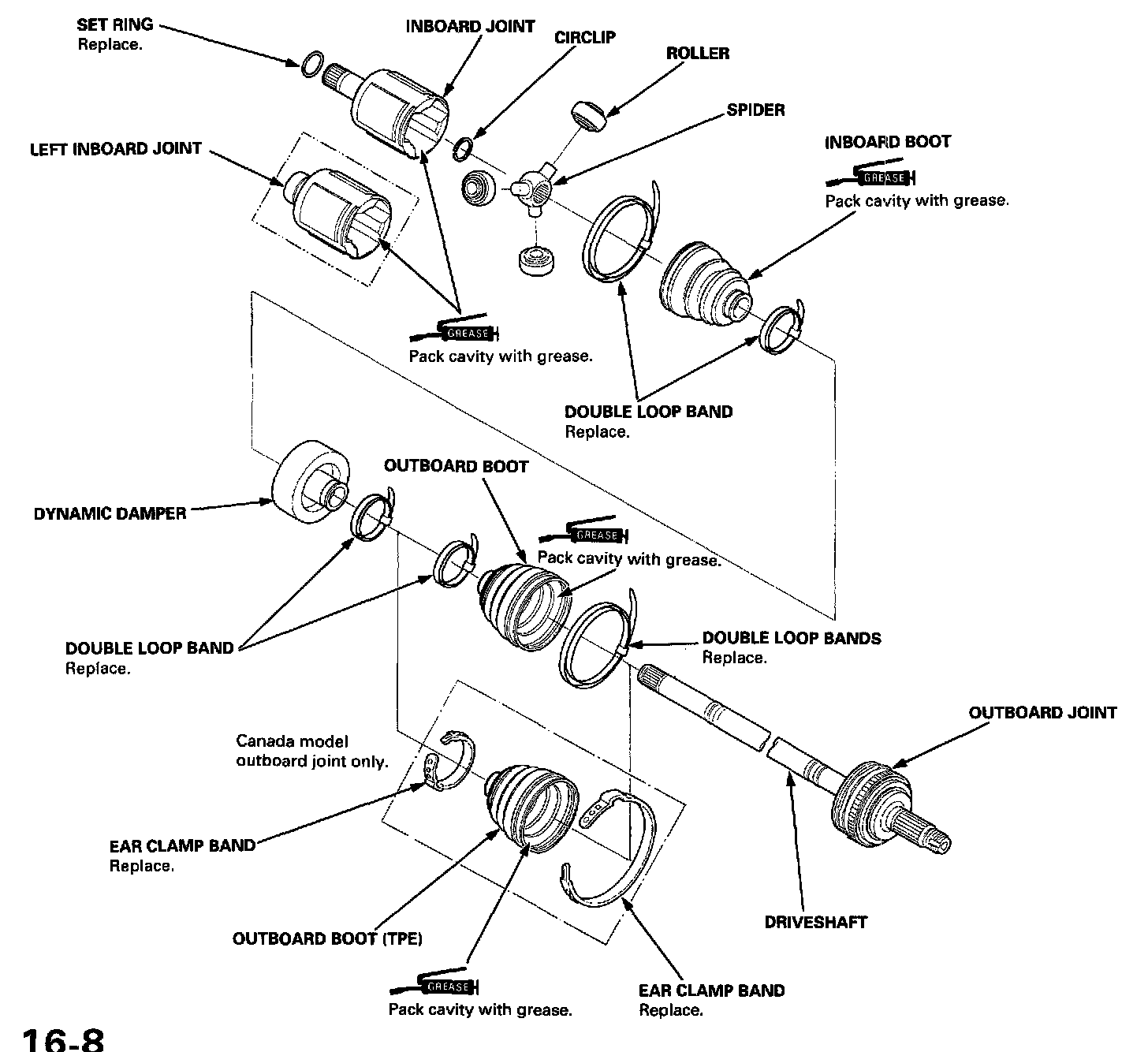 - The Canada model uses a Thermoplastic Polyester Elastomer (TPE) outboard joint boot. Use the ear clamp type boot band in the outboard joint boot set.