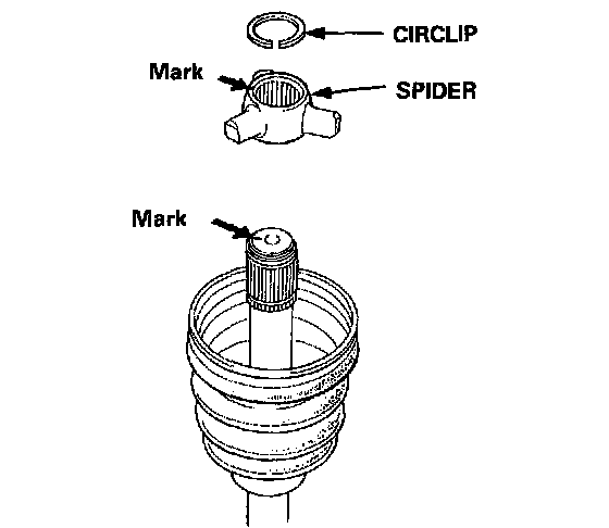 4. Install the spider on the driveshaft by aligning the marks on the spider and end of the driveshaft.
