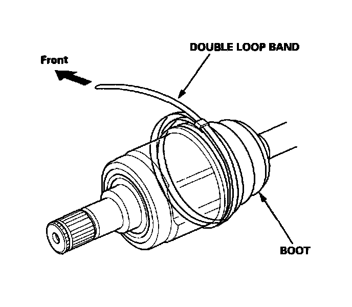 -1. Set the double loop band onto the boot with the band end toward the front of the vehicle.