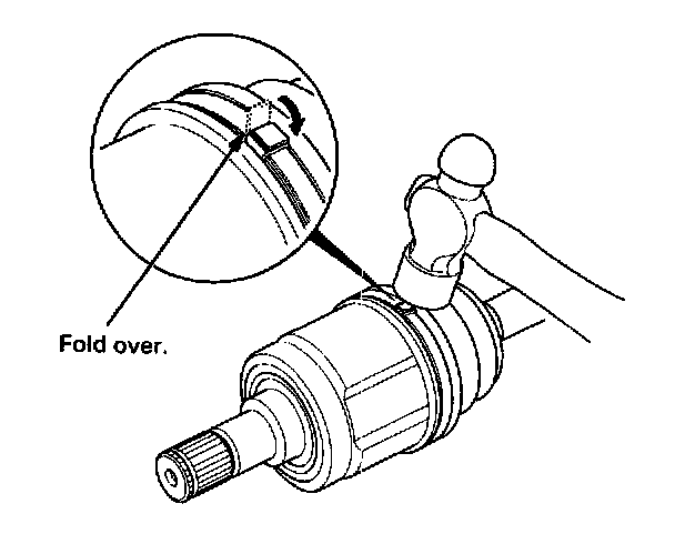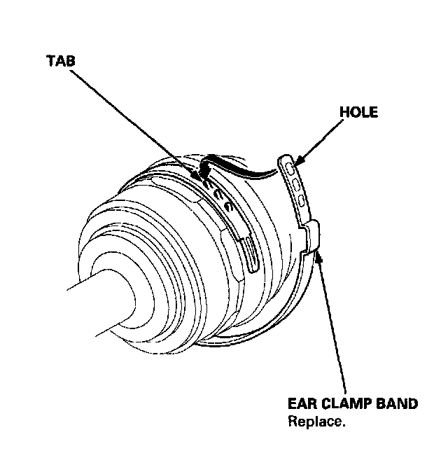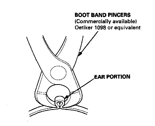 - If the boot band is an ear clamp type (for outboard joint on the Canada model, raise the three tabs with a screwdriver.