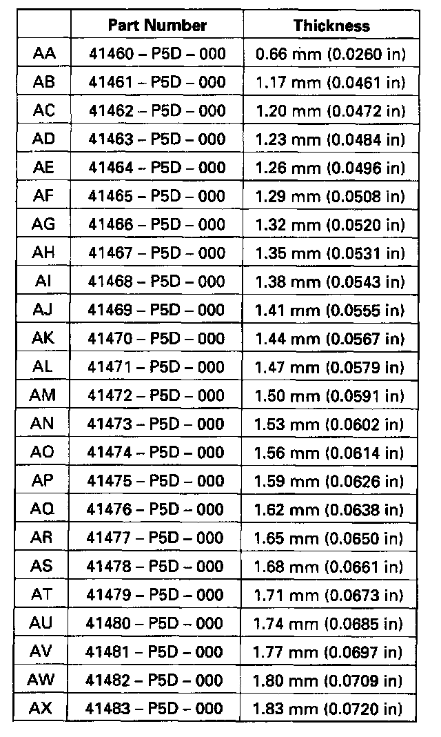 - In example(% your's was 0.8 Nm (8 kgf.cm, 7 inch lbs.) more than standard, so you need a thrust shim two sizes thinner (try the 1.32 mm (0.0520 inch) shim and recheck).