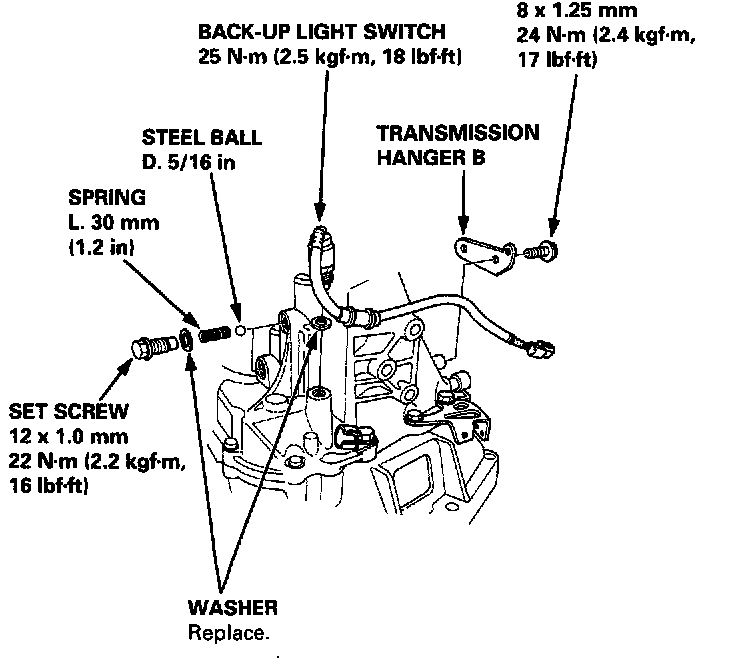 28. Install the back-up light switch and the transmission hanger B.