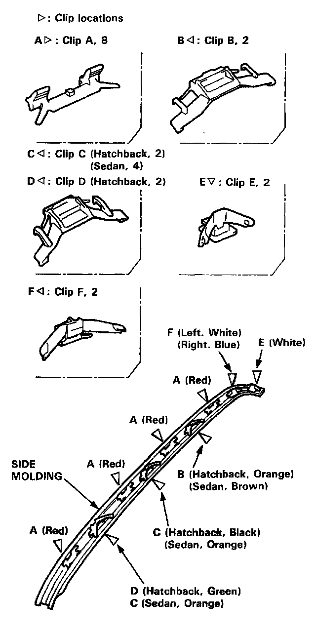 15. Install the clips on both side moldings.