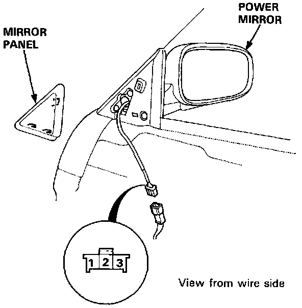 1. Remove the mirror panel and door panel (Sedan), then disconnect the 8-P (Hatchback) or 3-P (Sedan) connector from the power mirror actuator.