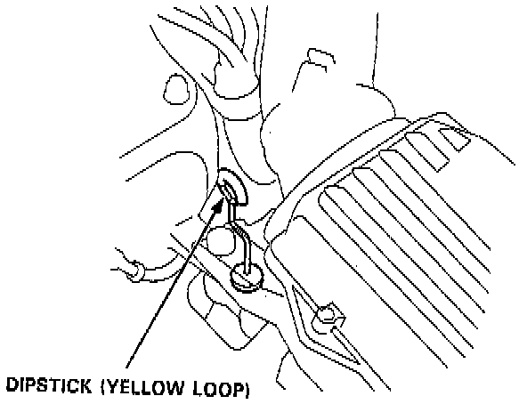 2. Remove the dipstick (yellow loop) from the transmission, and wipe it with a clean cloth.
