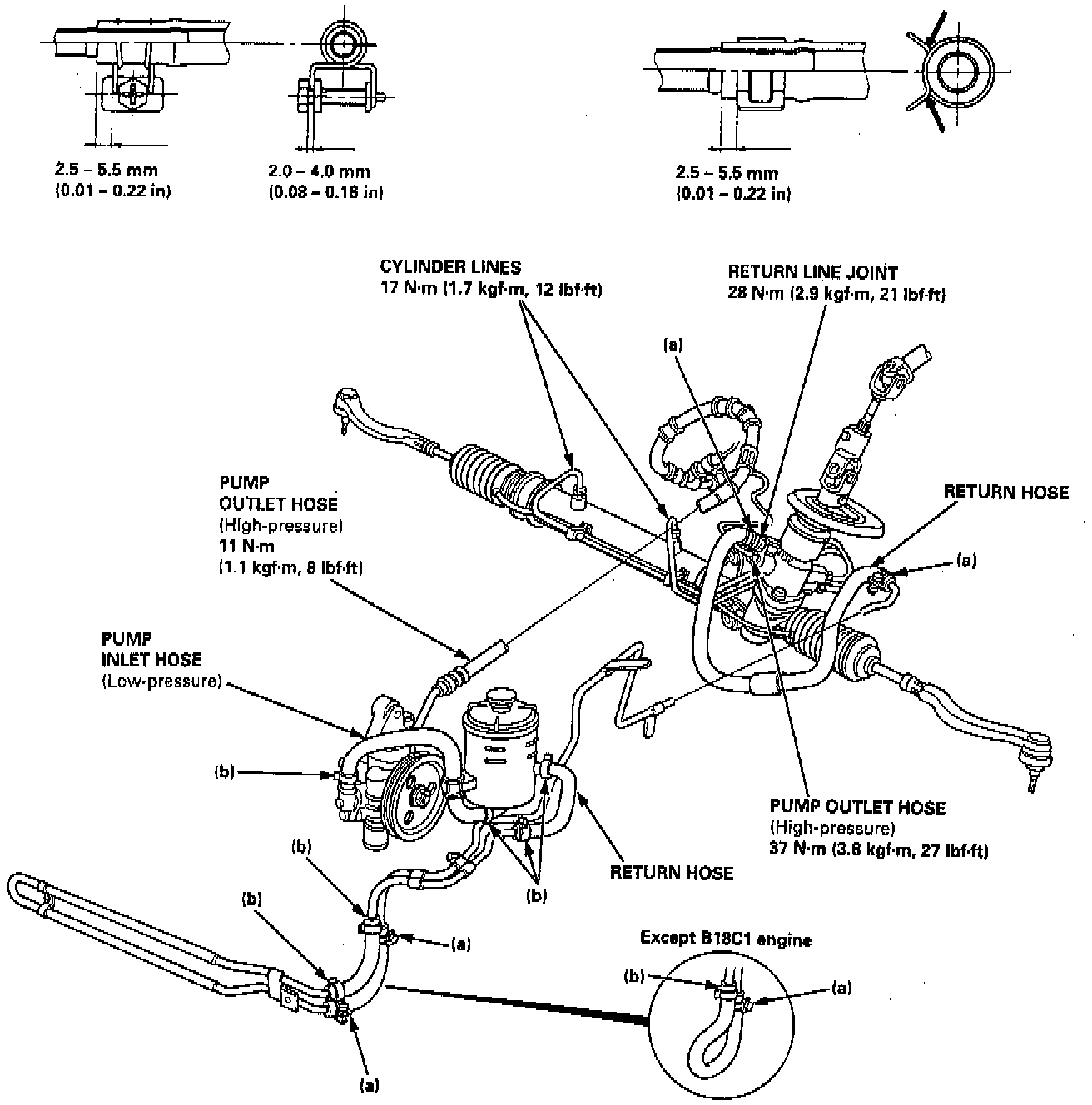 - Add the recommended power steering fluid to the specified level on the reservoir and check for leaks.