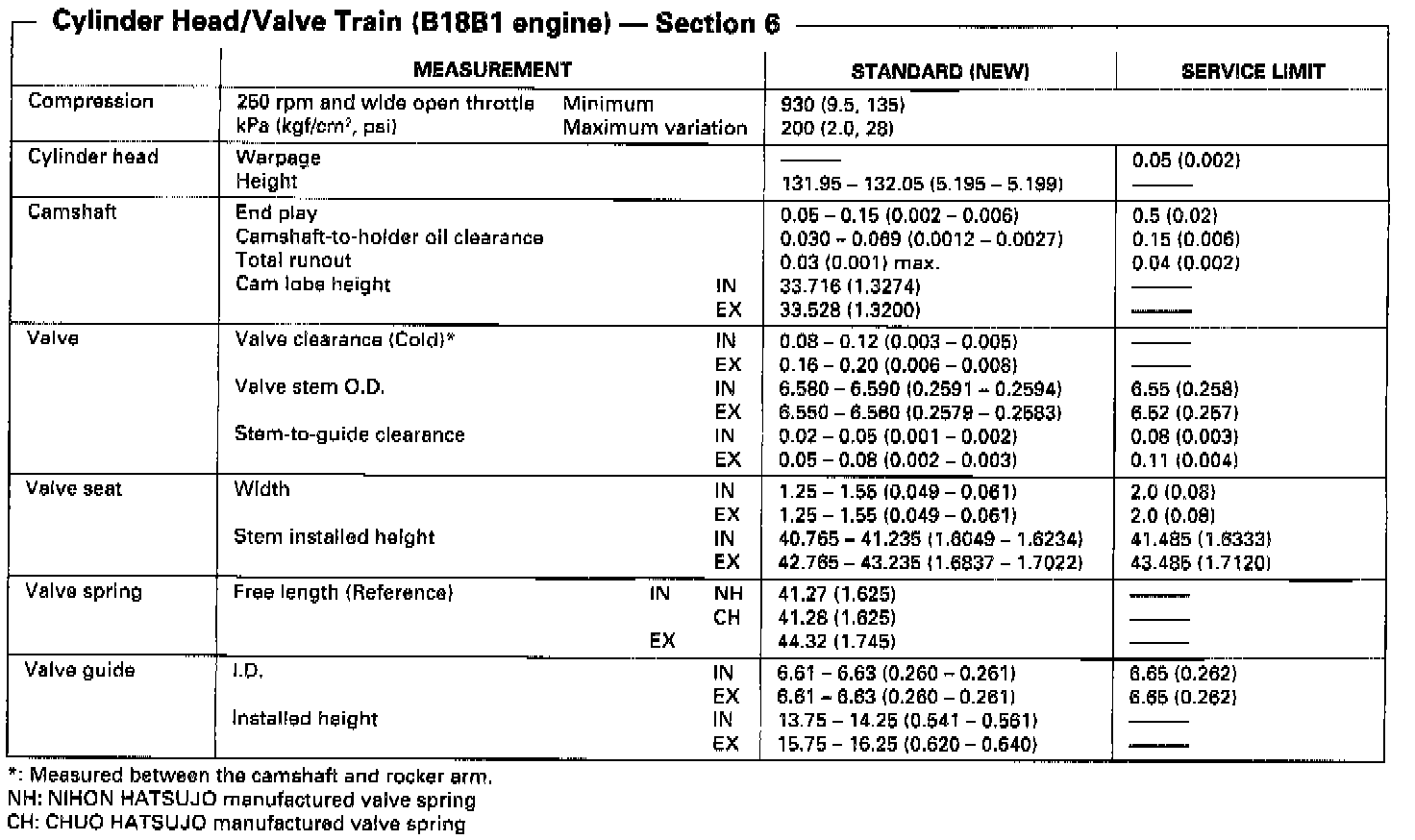 Cylinder Head/Valve Train (B18B1 Engine):
