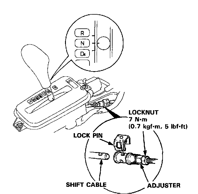 2. Shift to[N] position, then remove the lock pin from the cable adjuster.