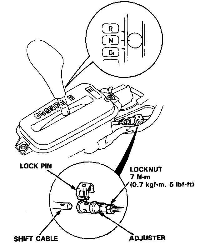 2. Shift to N position, then remove the lock pin from the cable adjuster.