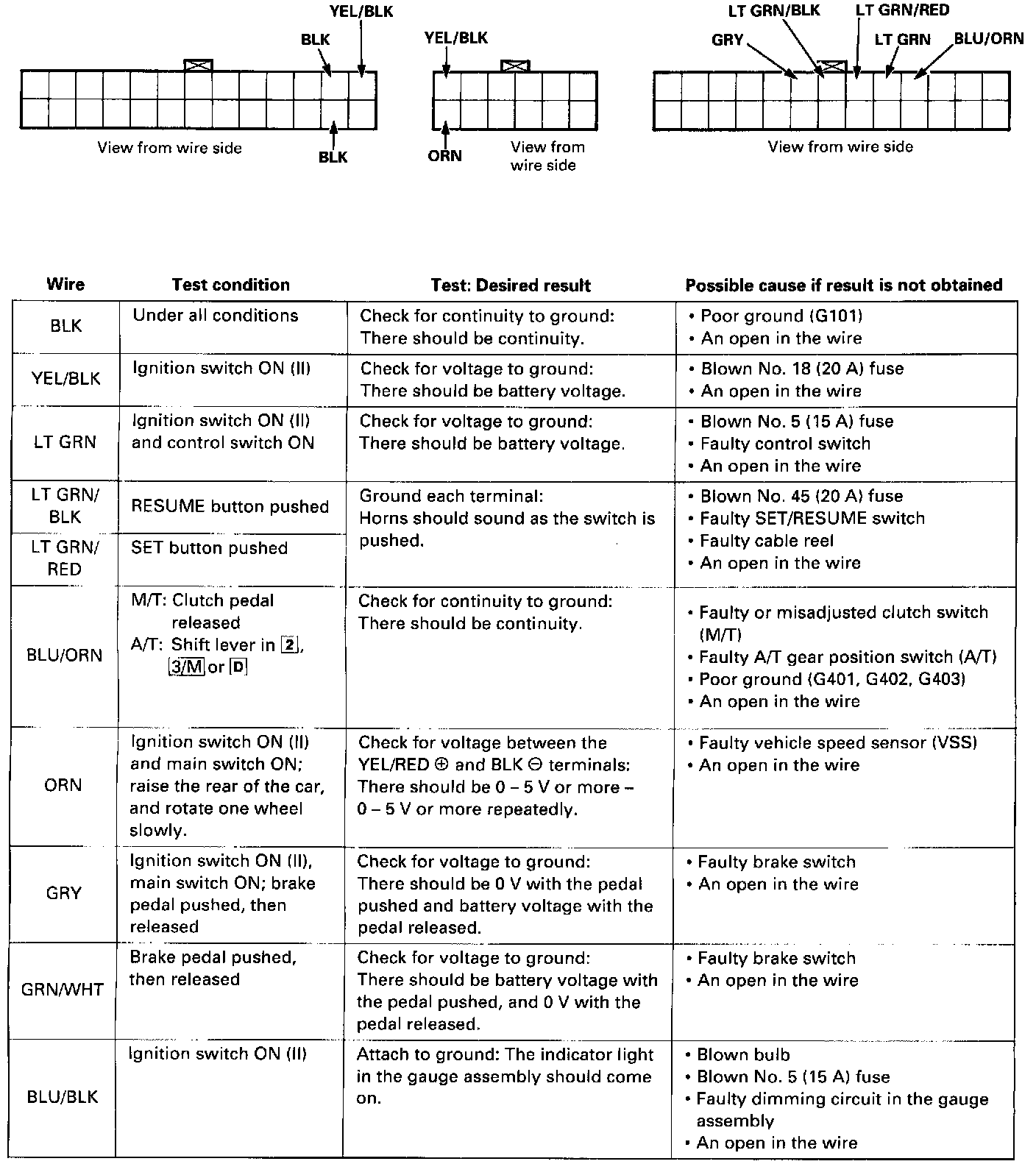 ^ If the terminals look OK, make the following input tests at the connector.