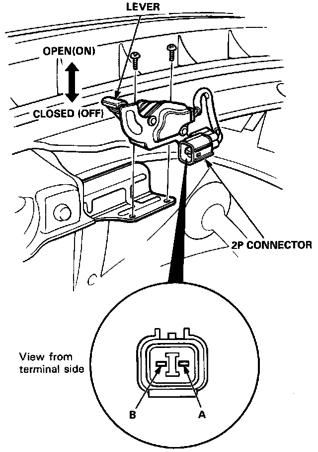- There should be continuity between the terminals with the lever released (lid open).