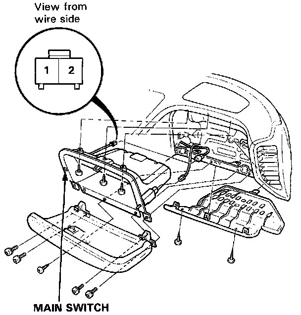 1. Remove the glove box, and disconnect the 2P connector from the switch.Main Switch Test: