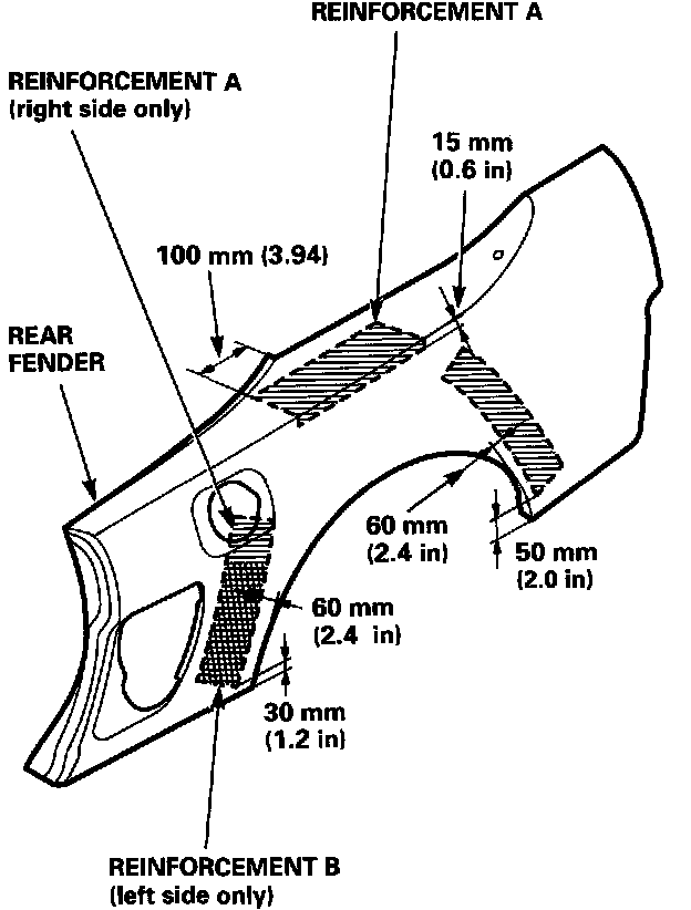 NOTE: Before applying the reinforcements, clean the rear fender surface with a sponge dampened in alcohol.