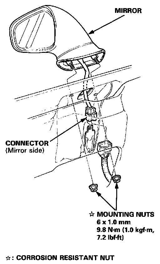 3. Remove the mounting nuts from the hole in the door while holding the mirror.