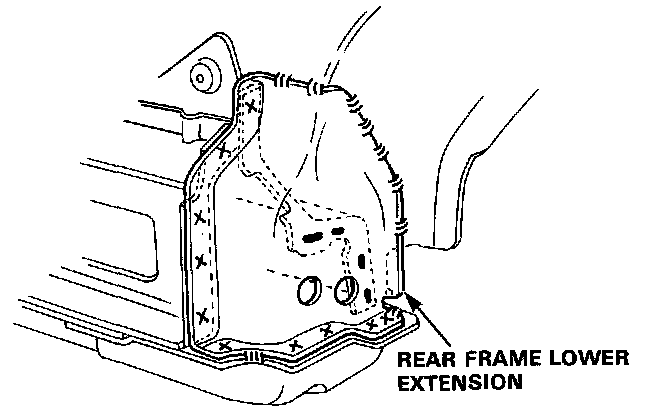 4. Drill the rear frame lower extension and remove it.
