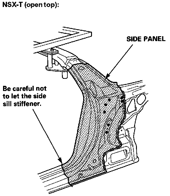 Jack up the body and place safety stands at the four designated of the side sills.