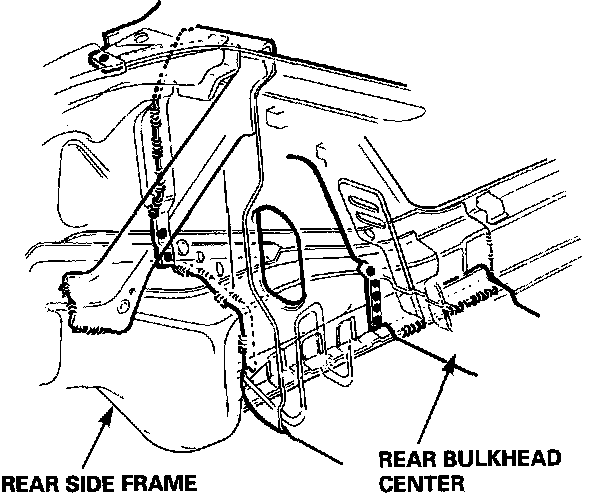 - Check the rear side frame and rear damper base positions using the body dimensional drawings.