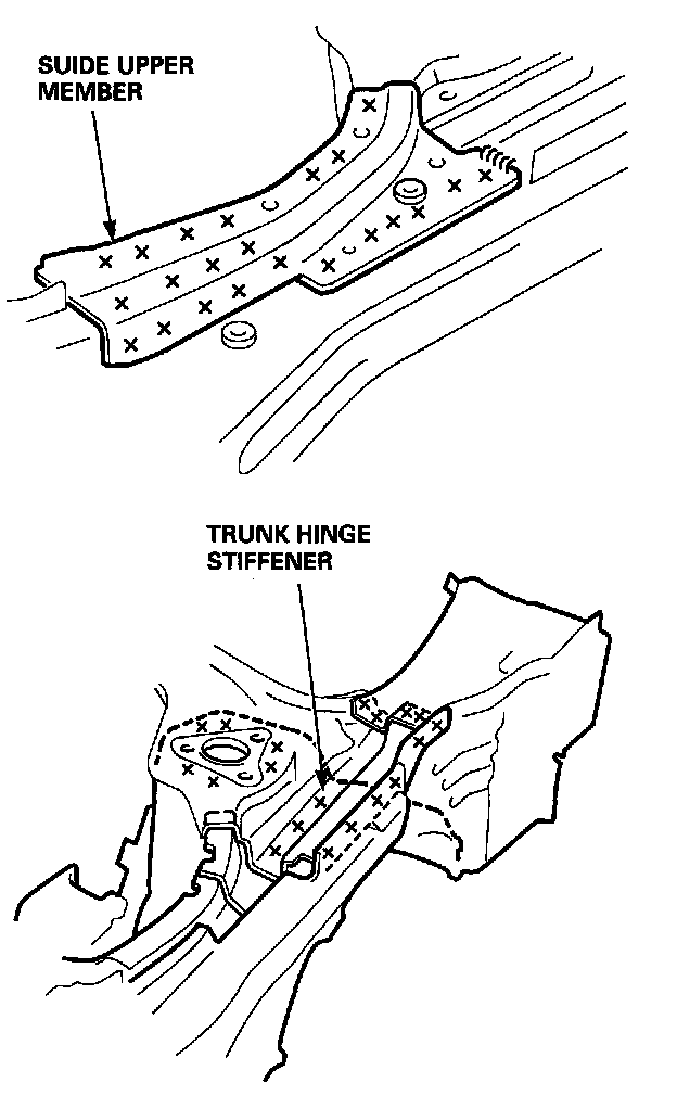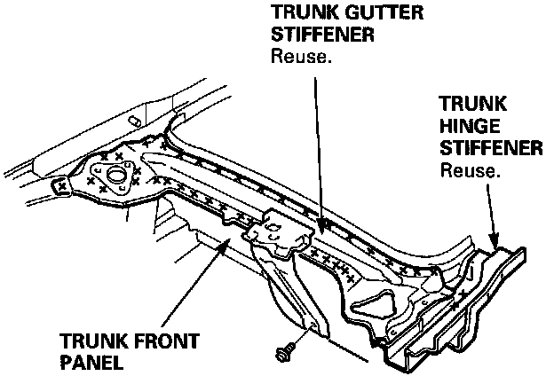 - Remove the trunk gutter stiffener and trunk hinge stiffener (one side).
