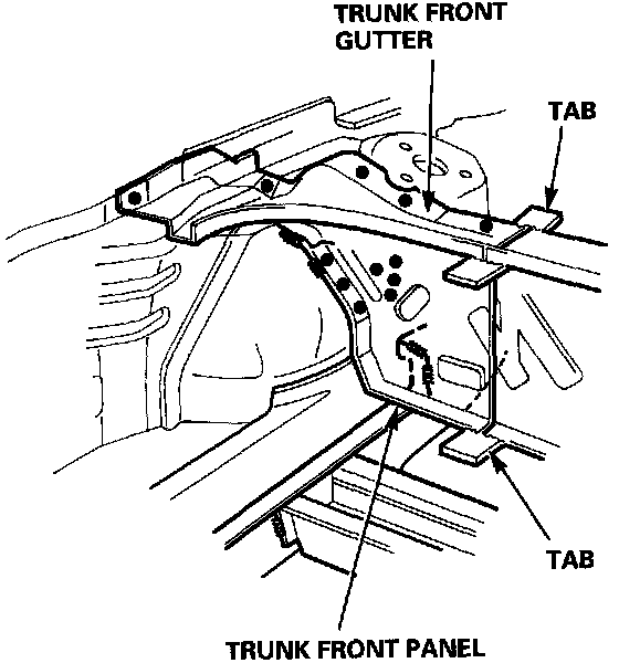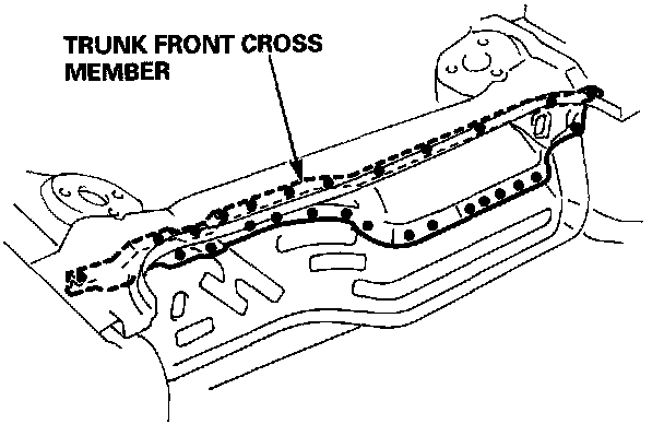 - Strike a punch in the center of the spot welds in the trunk front panel and side upper member.