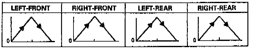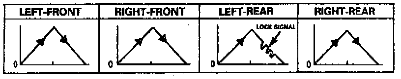 Mode 4 - Sends the driving signal of each wheel, then sends the lock signal of the left-front wheel to the ABS control unit to check the system under left-front wheel lock. There should be kickback.