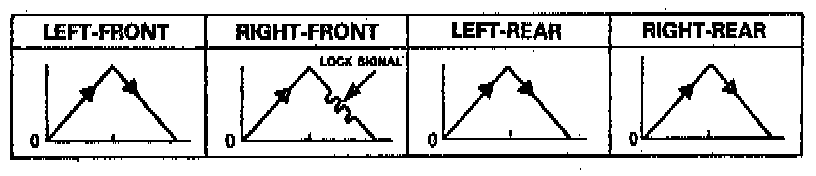 Mode 5 - Sends the driving signal of each wheel, then sends the lock signal of the right-front wheel to the ABS control unit to check the system under right-front wheel lock. There should be kickback.
