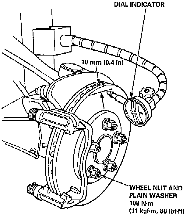 NOTE: A new disc should be refinished if its runout is greater than 0.10 mm (0.004 inch).