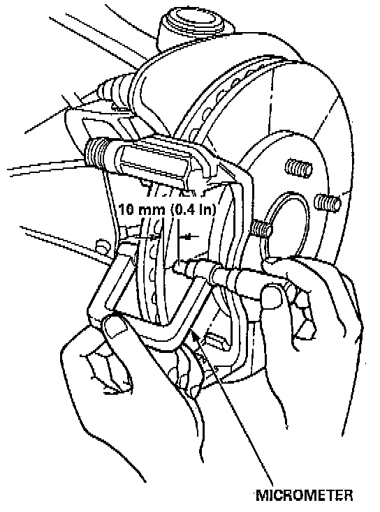 3. Using a micrometer, measure disc thickness at eight points, approximately 45° apart and 10 mm (0.4 inch) in from the outer edge of the disc.