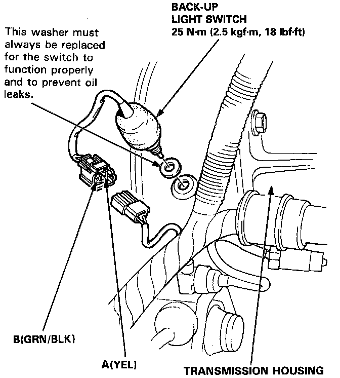4. Check for continuity between the A (YEL) and B (GRN/BLK) wires with the switch installed. There should be continuity with the shift lever in reverse.