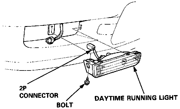 1. Remove the bolt, and pull out the daytime running light, then disconnect the 2P connector.