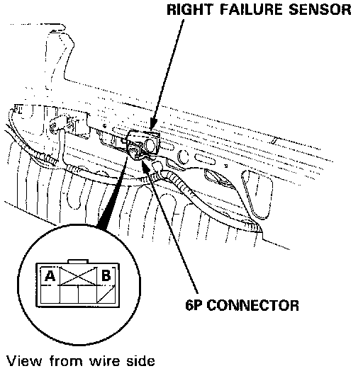2. Open the trunk lid, and remove the trim Panel that covers the right taillight. Watch the [BRAKE LAMP] light in the safety indicator when the A (WHT/GRN) wire of the 6P connector is grounded and the ignition switch is turned from OFF to ON (II).