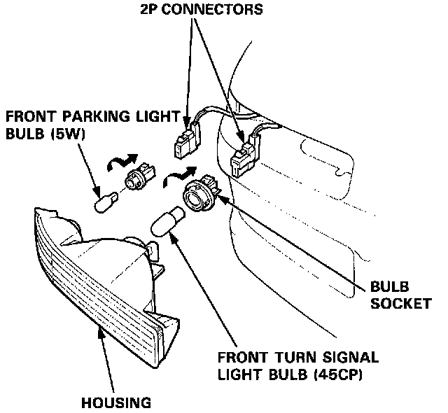 3. Turn the bulb sockets 45° counterclockwise to remove them from the housing.