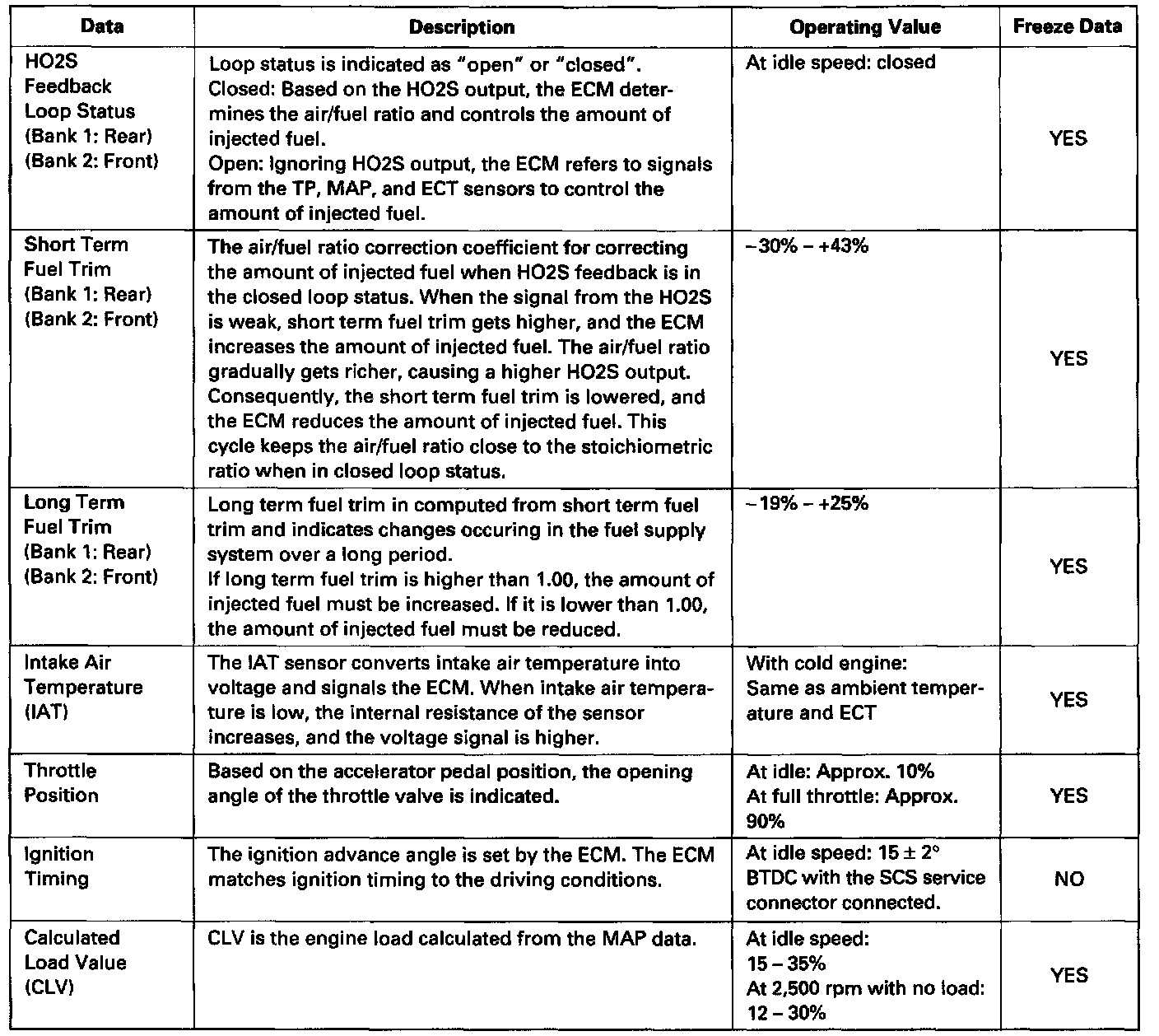 - The "operating values" given below are approximate values and may be different depending on the environment and the individual vehicle.