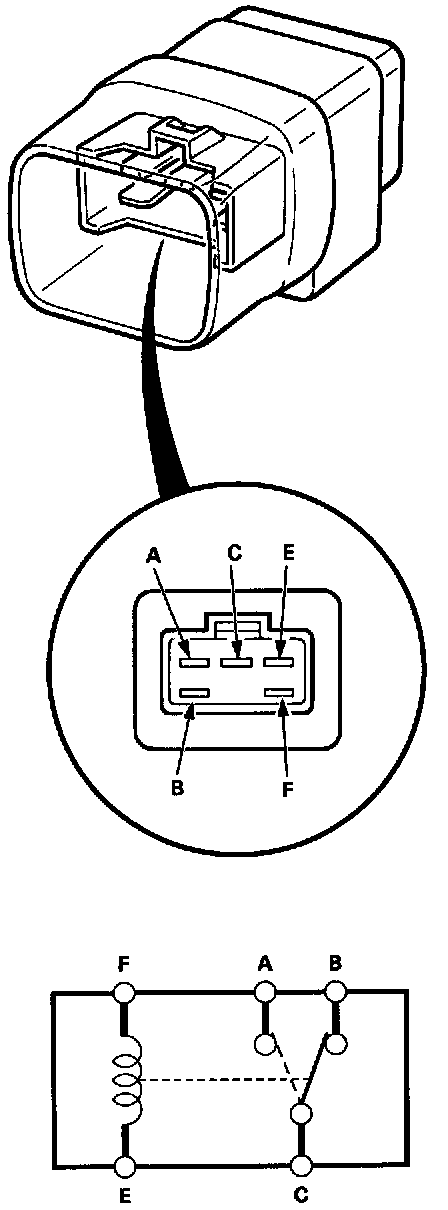 ^ There should be continuity between the A and C terminals when power and ground are connected to the E and F terminals.