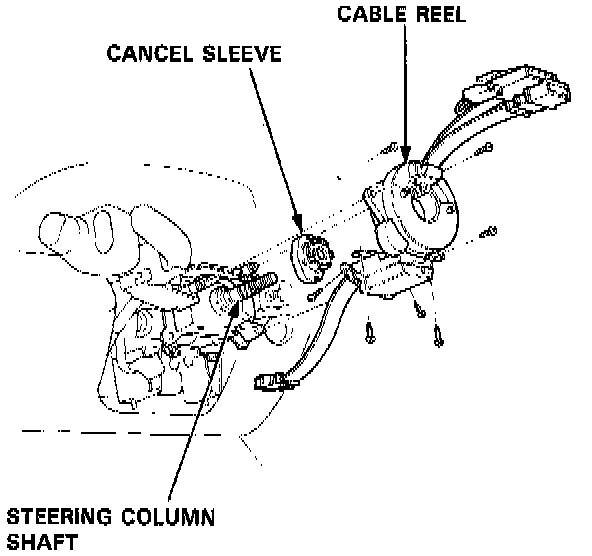 2. Carefully install the cable reel and the cancel sleeve on the steering column shaft.