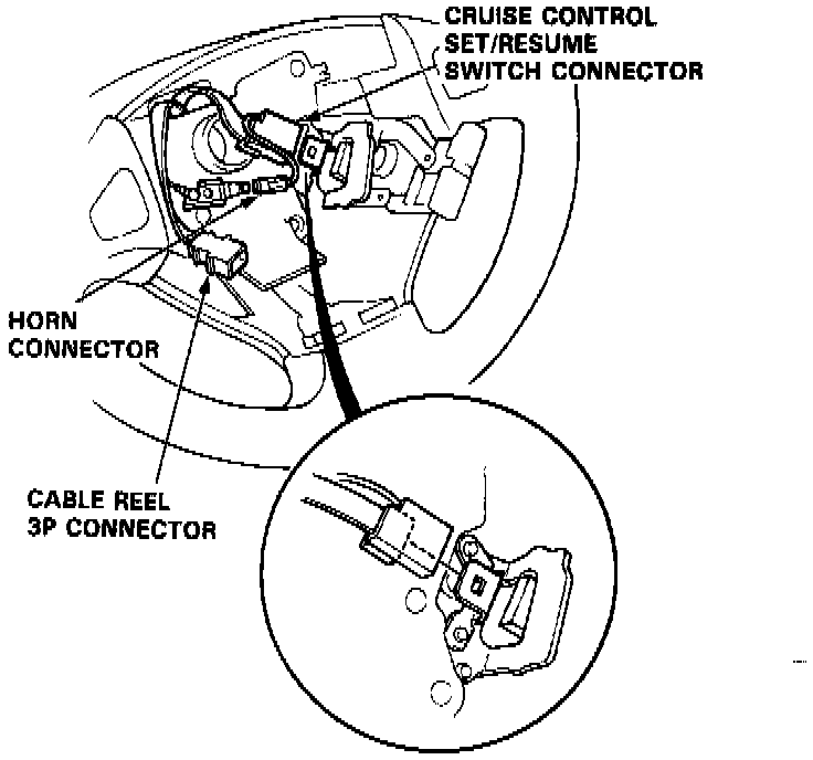 6. Connect the horn connector and cruise control connector.