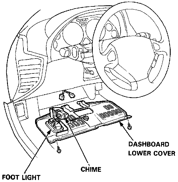 10. Connect the foot light harness and lights-on chime to the dashboard lower cover, then install the lower cover.