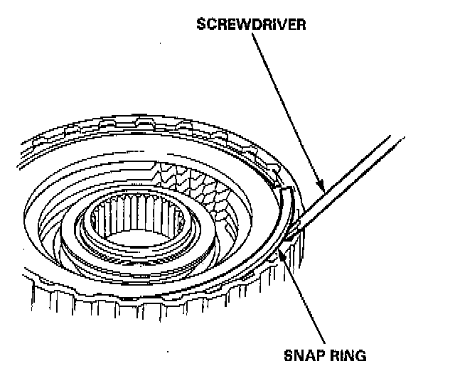 1. Remove the snap rings, then remove the clutch end plate, clutch discs and plates.