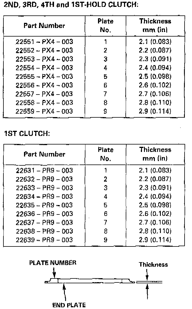 15. If the clearance is not within the service limits, select a new clutch end plate from the following table.