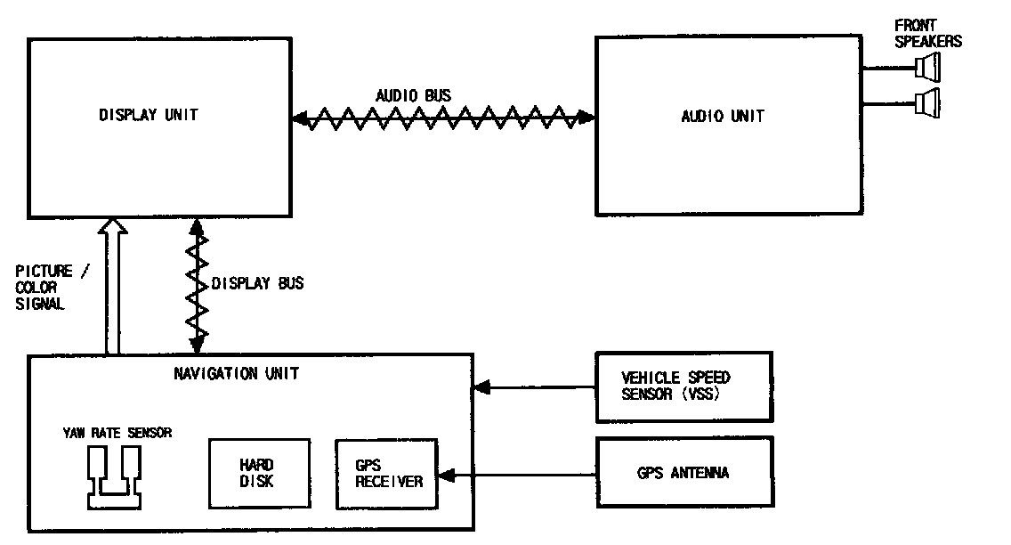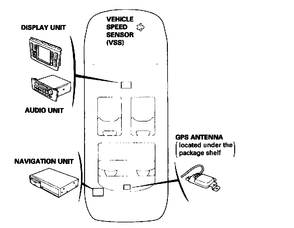 The Navigation System receives signals from the Global Positioning System (GPS), a network of 24 satellites in orbit around the earth. By receiving signals from several of these satellites, the Navigation System can determine the latitude and longitude of the vehicle. In addition, signals from the system's yaw rate sensor and the vehicle speed sensor (VSS) enable the system to keep track of the vehicle's direction and speed of travel.