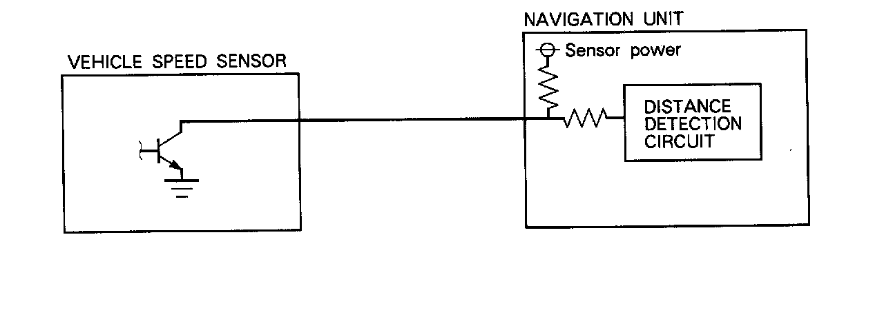 The vehicle speed sensor (VSS) is driven by the differential gear. For every revolution of the sensor, a four-pulse signal is sent to the navigation unit. The VSS outputs the distance signal by turning the navigation unit's sensor power on and off.
