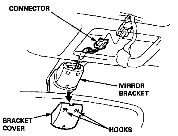 2. Disconnect the connector, and carefully remove the bracket cover by releasing the hooks. Take care not to scratch the cover and mirror bracket.