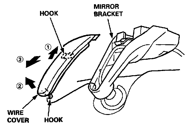 4. Remove the wire cover from the mirror bracket by releasing the hooks in the sequence shown.