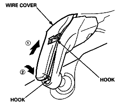 6. Install the wire cover in the sequence shown. Take care not to damage the hooks.