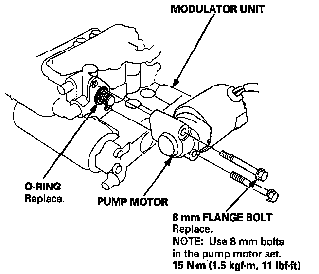 It adjusts the hydraulic pressure applied to each caliper on the basis of the signals received from the Anti-lock Brake System (ABS) control unit. The modulator unit consists of the following sub-units.