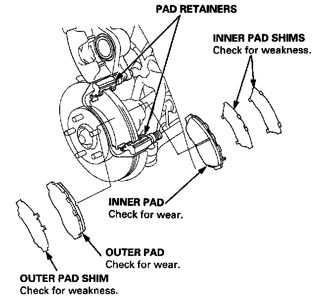 NOTE: Replace the shims together with the pads as a set.